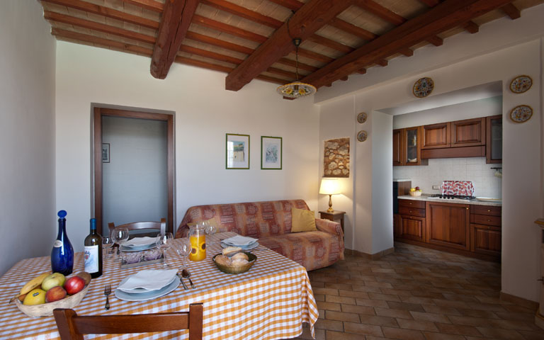 Bilocale - E' composto da: soggiorno con divano, cucina, camera matrimoniale, bagno con doccia.
